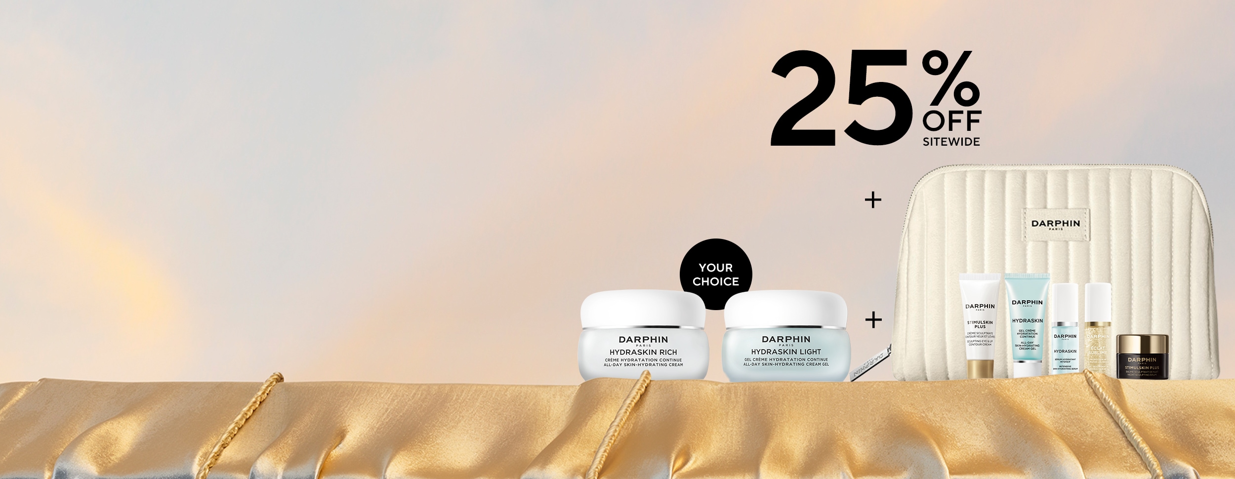 Enjoy 25% off your purchase. Receive a 6-piece Gift Set including a pouch with $150+. Upgrade to a free full-size Hydraskin Light or Hydraskin Rich with $200+.