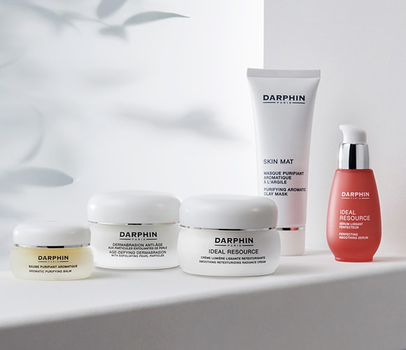 Using a mask treatment at least once a week can help gently draw out oils and cleanse pores. Darphin’s Skin Mat Purifying Aromatic Clay Mask purifies and absorbs excess oil to reveal a glowing, radiant looking complexion with less noticeable pores.