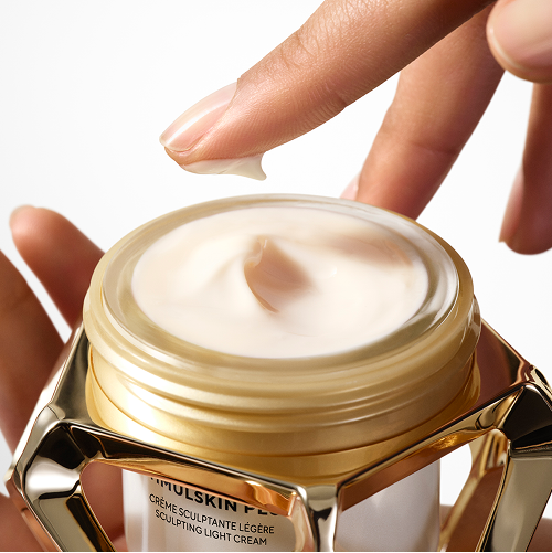 Stimulskin Plus  Sculpting Light Cream is the result of 65 years of expertise in morphological aging by treating visible signs of sagging. This remodeling light cream is powered by precious Sea Emerald Algae and Peptide-3+ Complex to help reignite three fundamental proteins1, and reinforce skin’s morphological structure. From first application, skin is intensely hydrated and protected against moisture loss. Over time, skin appears highly rejuvenated, more lifted and firmer, to unveil a more sculpted look.