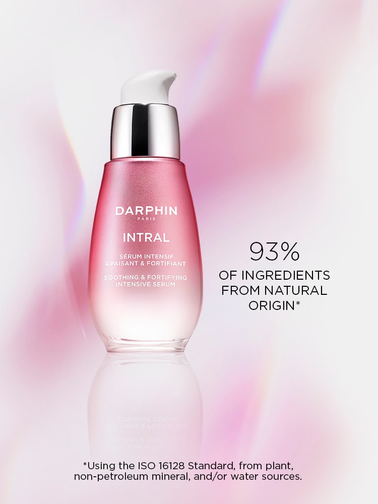 The Intral Soothing & Fortifying Intensive Serum is an expert serum to help soothe the appearance of irritation and fortify skin. Enriched with Soothing Postbiotic ferment and 6 times more Vitamin B5*, it helps inhibit the look of redness and irritation for more balanced looking skin. Filaggrin-boosting Algae extract helps boost the levels of filaggrin, skin's dynamic defense protein. Non-acnegenic. 93% of ingredients from natural origin.** *Compared to the amount of vitamin B5 in the Intral Inner Youth Rescue Serum** Per ISO standard 16128, from plant sources, non-petroleum mineral sources, and/or water